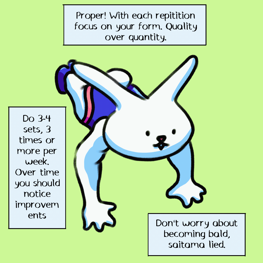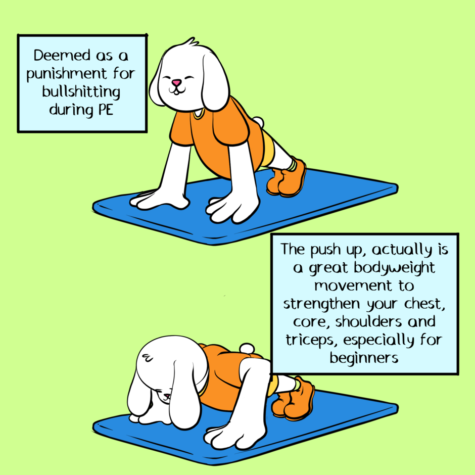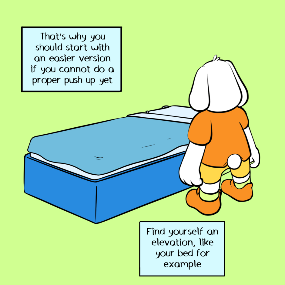 You know that one guy that says he can do 100 push ups in a row? He's lying. Proper push ups are way harder than one might expect and they are an effective compound movement that challenge basically your whole upper body with an emphasis on your shoulders, chest and triceps. There a whole lot of variations that allow you to make this exercises fit your trainig needs. The best thing, you can do it everywhere (well maybe not in space) at anytime with zero cost. The different variations of a push up will be covered in a seperate. With this one I want to test the waters.